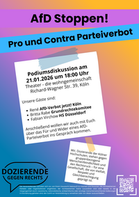Podiumsdiskussion über das Für und Wider eines AfD-Parteiverbotsverfahrens und anschließendem Gespräch Mit Renè von der Kampagne AfD-Verbot jetzt, Britta Rabe vom Grundrechtekomitee, und Fabian…