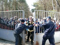 Über 180 Flüchtlinge aus dem Rückführungs- und Abschiebelager in Bramsche-Hesepe fordern die Schließung des Lagers und eine dezentralen Unterbringung.- Demonstration der Lagerinsassen am 2.…
