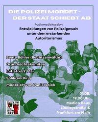 39. DIE POLIZEI MORDET – DER STAAT SCHIEBT AB Podiumsdiskussion: Entwicklungen von Polizeigewalt unter dem erstarkenden Autoritarismus